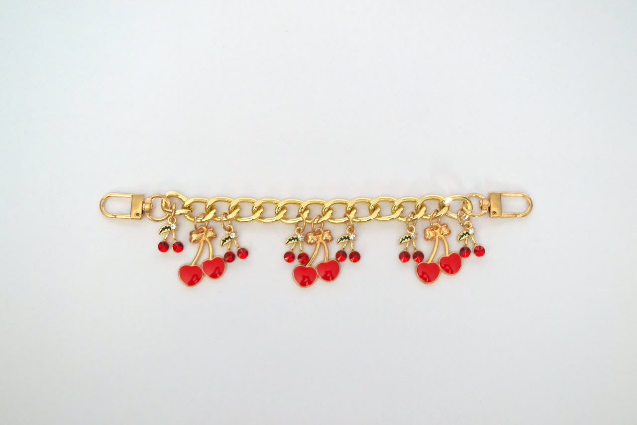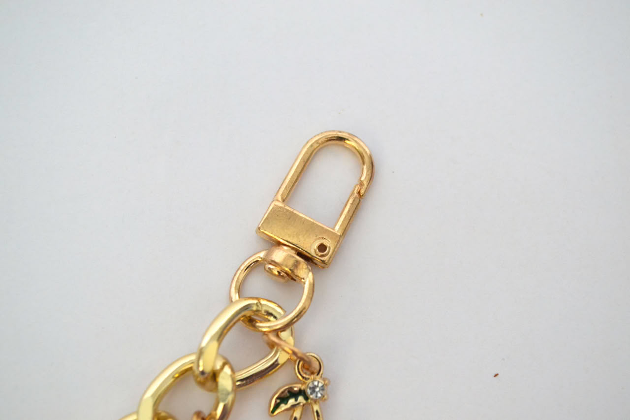 This short decorative chain features flower details and a sturdy metal finish. Designed as a decorative strap, it adds a accent to handbags and it is comportable for everyday use.