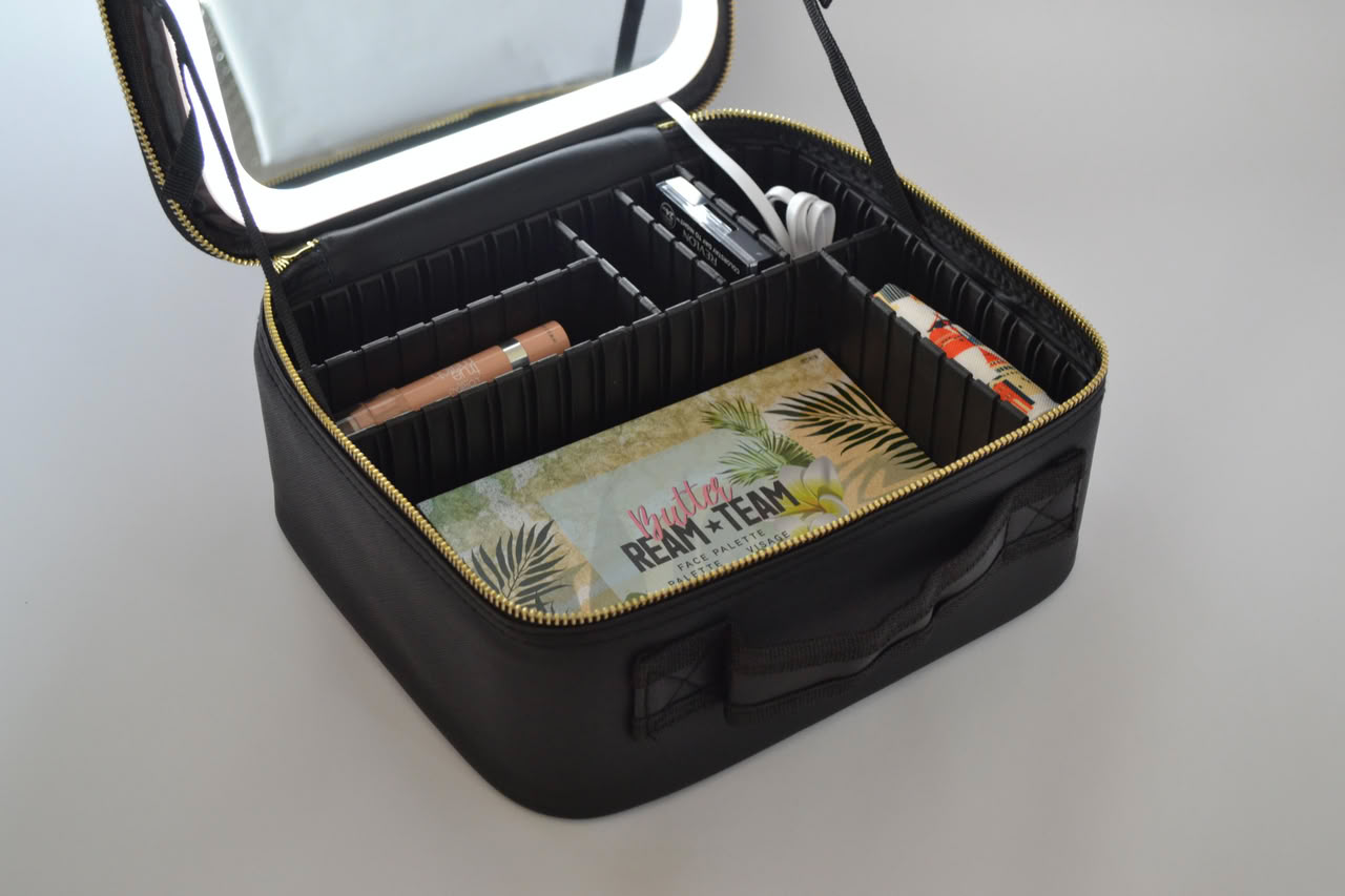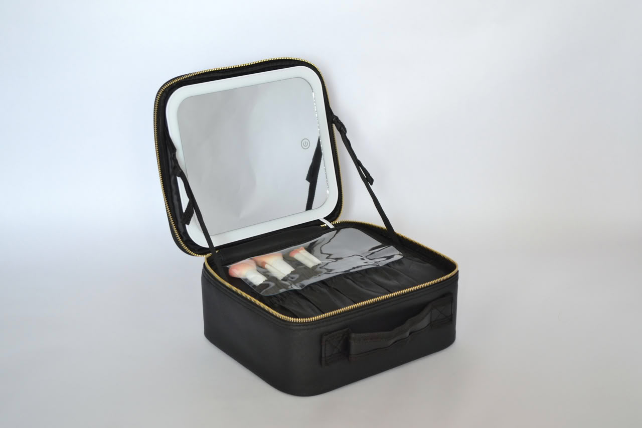 Large Capacity Travel Makeup Bag With 3 in 1 LED Light Mirror – Black