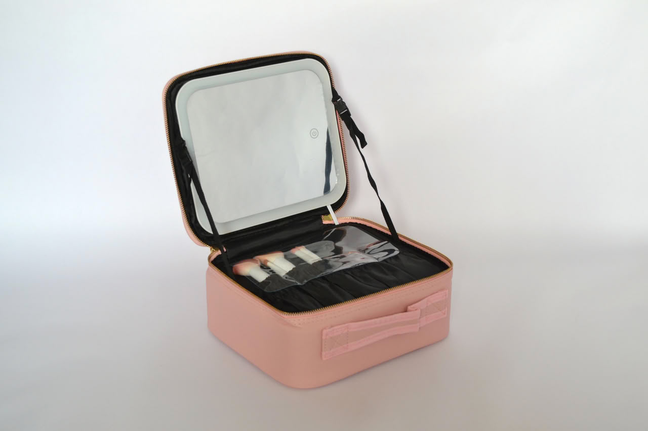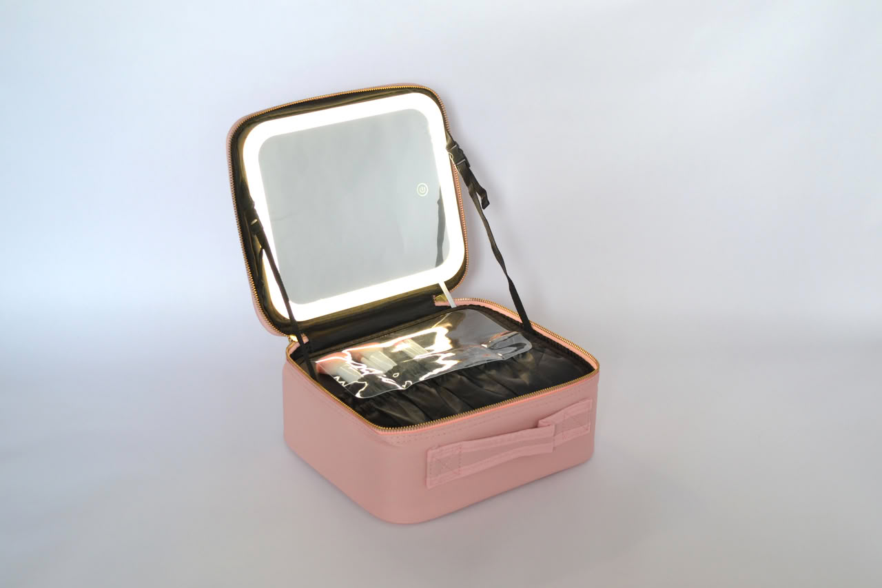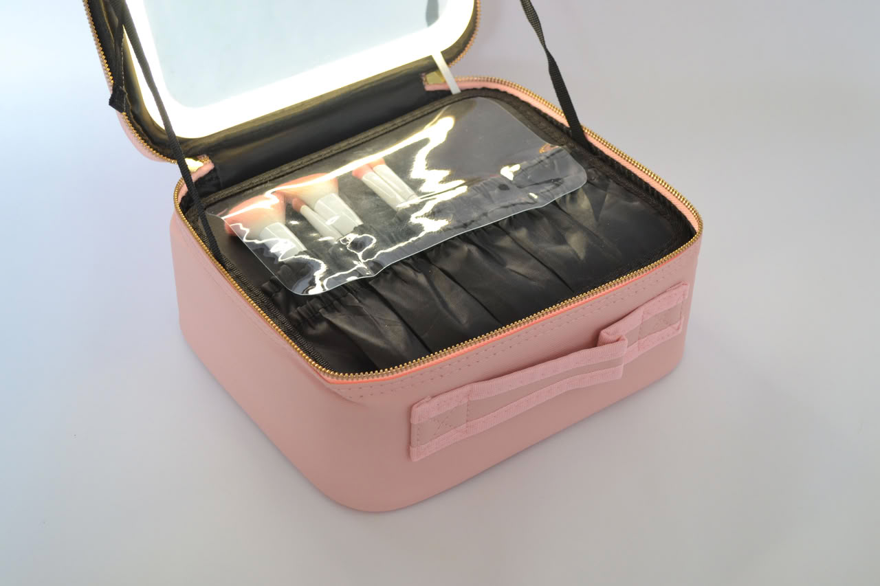 Large Capacity Travel Makeup Bag With 3 in 1 LED Light Mirror – Pink