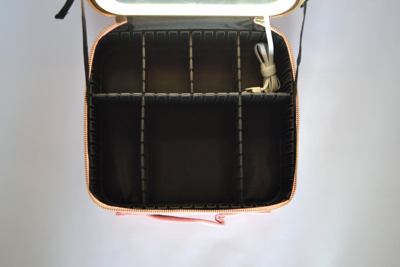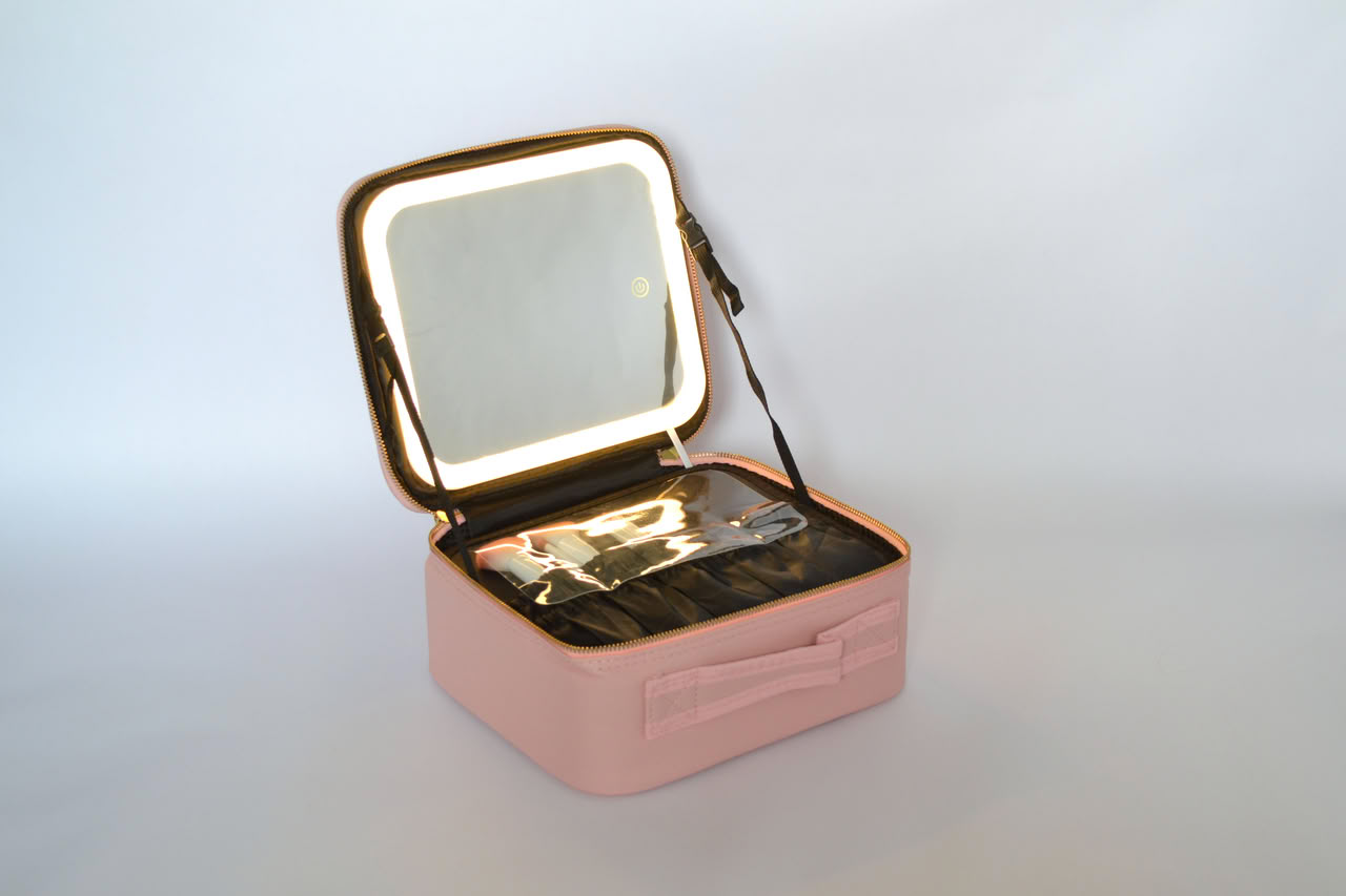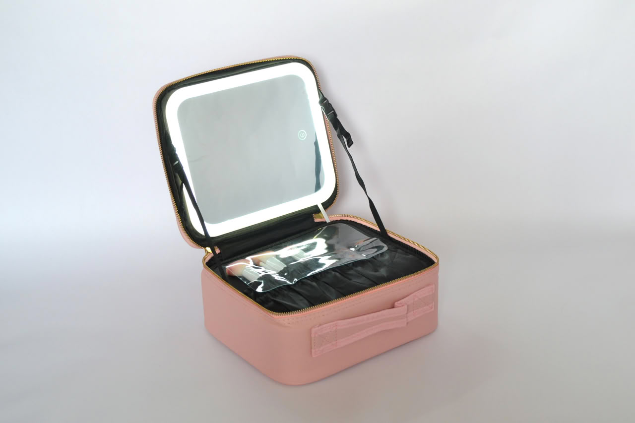 Large Capacity Travel Makeup Bag With 3 in 1 LED Light Mirror – Pink