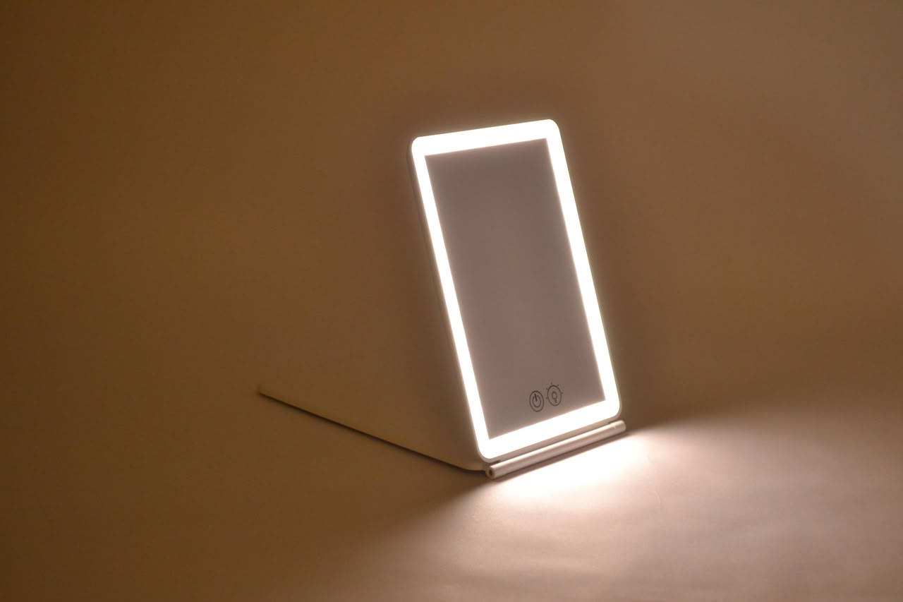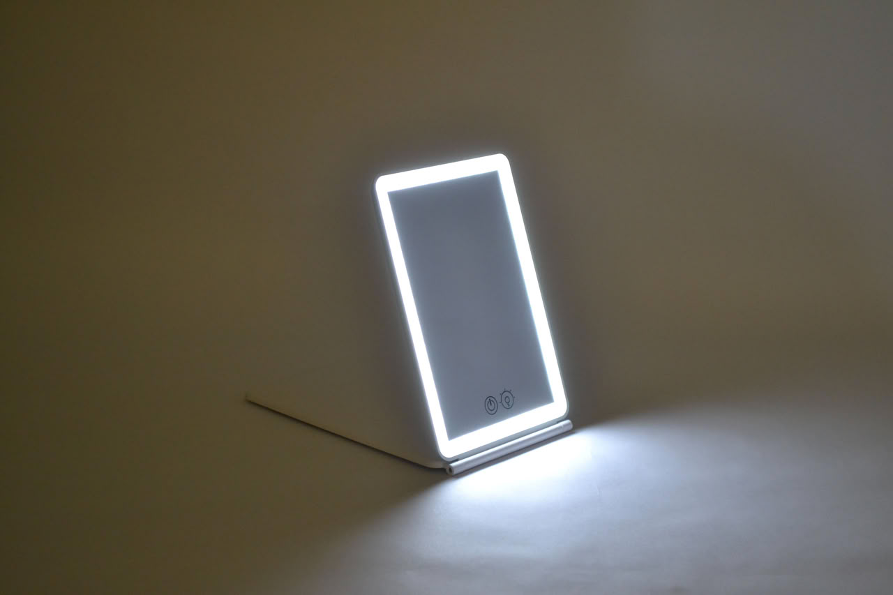 Makeup Mirror with 3 Color Touch Switch & Adjustable LED Lights. Foldable and adjustable trough free rotation. Has 1X and 3X magnification. Rechargeable trough USB 1000 mAh battery provides about 1.3H continuous work on the brightest setting