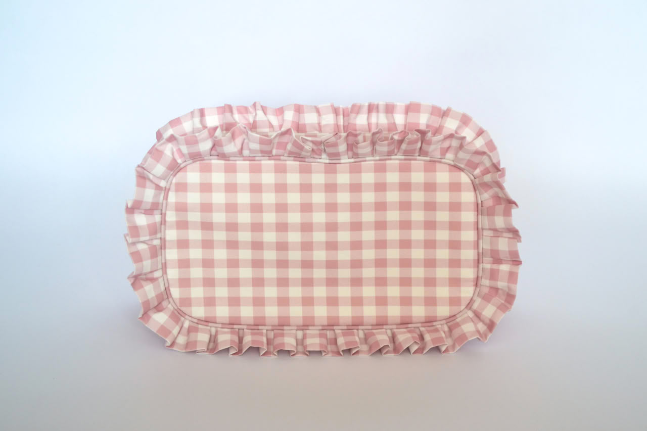 Large Capacity Portable Zipper Cosmetic Bag with Ruffle Gingham Plaid is made from durable fabric, it ensures reliable protection for cosmetics. Zipper closure provide secure storage for the cosmetics