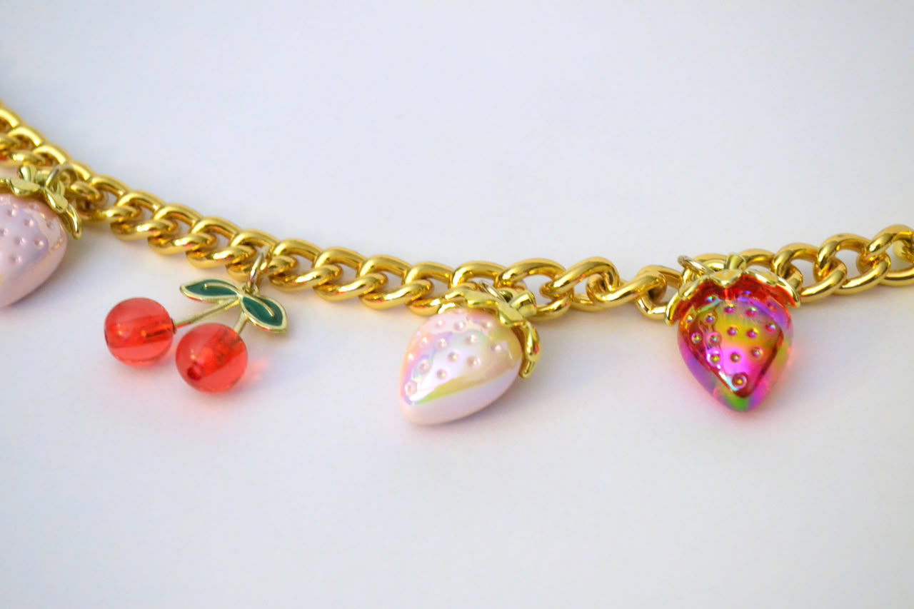 Strawberry Cherry Gold Decorative Chain is made from durable zink alloy ensure long lasting wearing