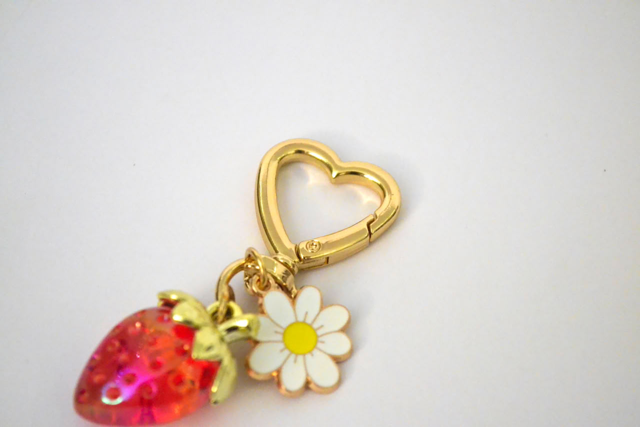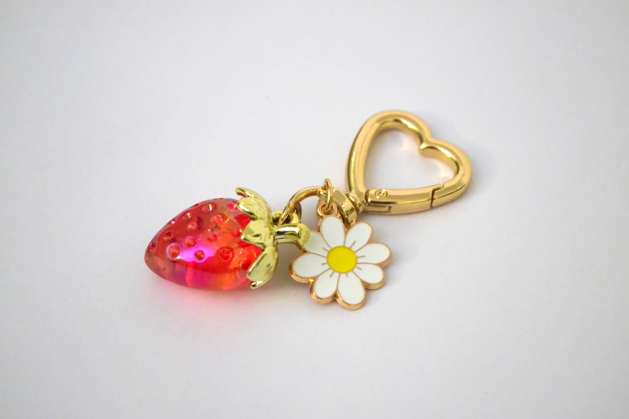 Designed with floral and strawberry details, this keychain brings a fresh decorative touch to keys, bags, or car accessories. Lightweight and easy to attach for everyday use